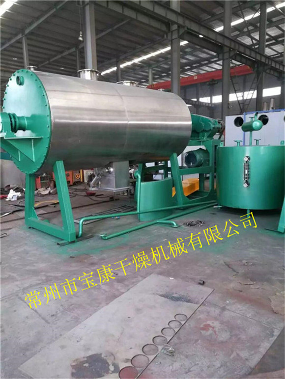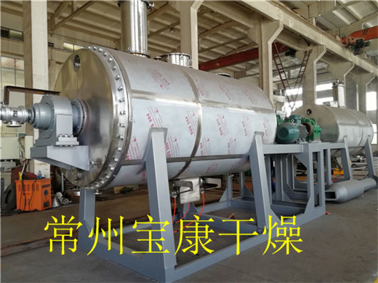 本机是一种新颖卧式间歇式真空干燥设备,湿物料经传导蒸发,带有刮板搅拌器不断清除热面上的物料,并在容器内推移形成循环流,水份蒸发后由真空泵抽出。