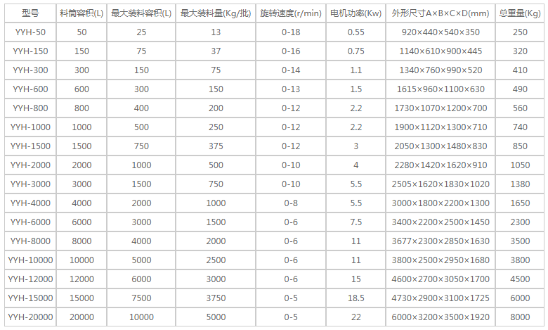 运转时,装料筒体绕中心轴做回转运动(简称“一维运动”),而筒内物料作三维运动,故物料的混合精度可与二维,三维运动混合机相媲美。
